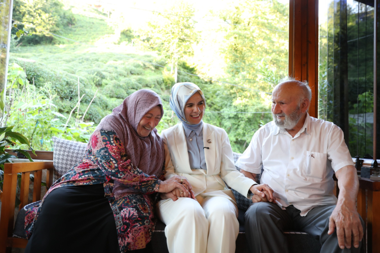 Aile ve Sosyal Hizmetler Bakanı Mahinur Özdemir Göktaş, "Aile Yılı" kapsamında Rize'de 63 yıldır evli olan Mükerrem ve Ahmet Kanbur çiftini ziyaret etti. Bakan Göktaş, Belçika Parlamentosundaki mücadelesinden beri kendisini takip ettiğini söyleyen Kanbur çiftiyle çay eşliğinde keyifli bir sohbet gerçekleştirdi.