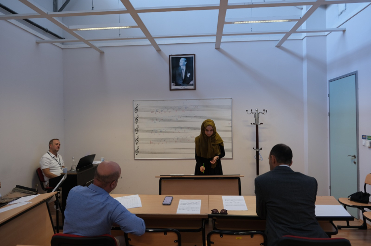 BURSA (İGFA) - Bursa Büyükşehir Belediyesi Kültür ve Sosyal İşler Dairesi Başkanlığı Orkestra Şube Müdürlüğü bünyesindeki Türk Sanat Müziği, Türk Halk Müziği ve Çalgıcı Mektebi bölümlerinde sınav heyecan yaşandı. Başvuru yapan 686 aday, 4 yıllık konservatuvar eğitimi almak için usta sanatçıların karşısında müzikal yeteneklerini sergiledi. Merinos Yerleşkesi’nde gerçekleştirilen mülakatlarda, eğitmenler tarafından adayların müzik bilgisi, ses yeteneği, nota bilgisi ve enstrüman becerileri değerlendirildi.