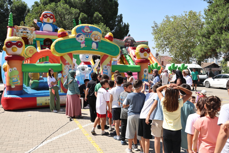 Ardından “Çocuk Akademisi Yaz Atölyesi” standına geçen Başkan Şadi Özdemir, çanta baskı, maske yapımı ve İngilizce atölyelerindeki çocuklarla bir araya geldi. Atölyeleri ve oyun alanlarını gezerek çocuklarla tek tek ilgilenen Başkan Şadi Özdemir, onların yaratıcı çalışmalarını inceledi ve neşelerine ortak oldu.