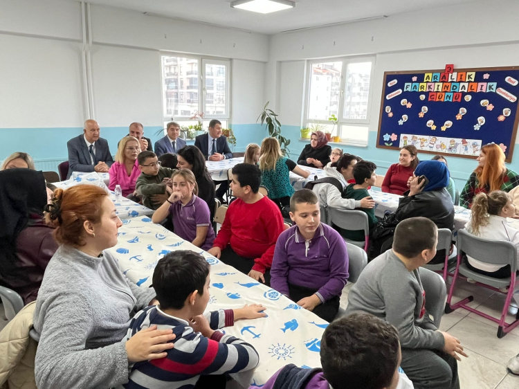 Bursa'nın Mudanya ilçesinde Şükrü Çavuş Sait Eroğlu İlkokulu, 3 Aralık Dünya Engelliler Günü kapsamında özel gereksinimli bireylere yönelik düzenlediği anlamlı programda farkındalık pastası kesti.